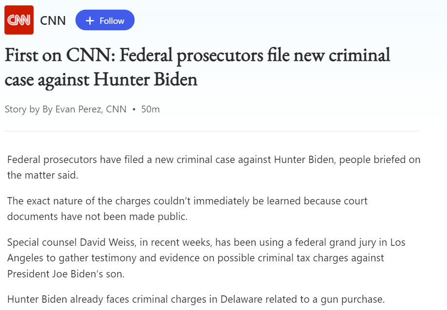 Breaking: Joe Biden Pardons Son Hunter Biden in Gun and Tax Cases--And Any Federal Crimes From 2014 Through 2024 | The Gateway Pundit | by Kristinn Taylor