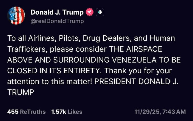 above & surrounding Venezuela is ‘closed in its entirety.’