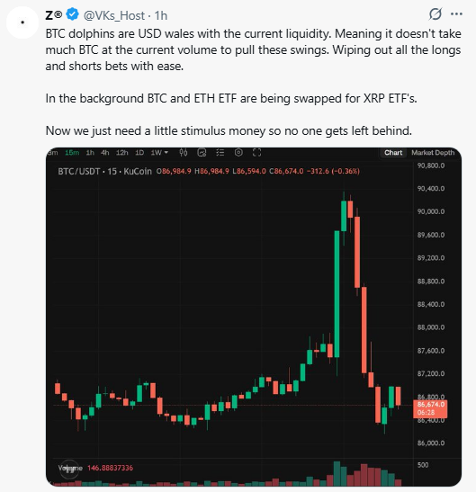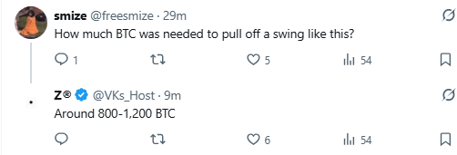 When someone asked how much Bitcoin it takes to cause a move like this, the answer was: