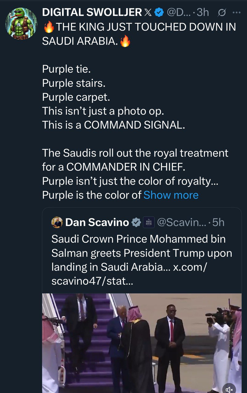 🦅🇺🇸🪖 President/CiC Trump arrives in Saudi Arabia.