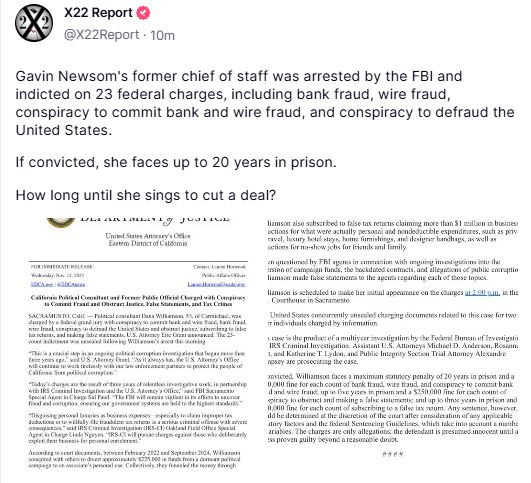 President Trump says his admin is about to release "truckloads" of evidence that proves the 2020 election was rigged, and that Governor Gavin Newsom is rigging California elections with mail-in ballots.