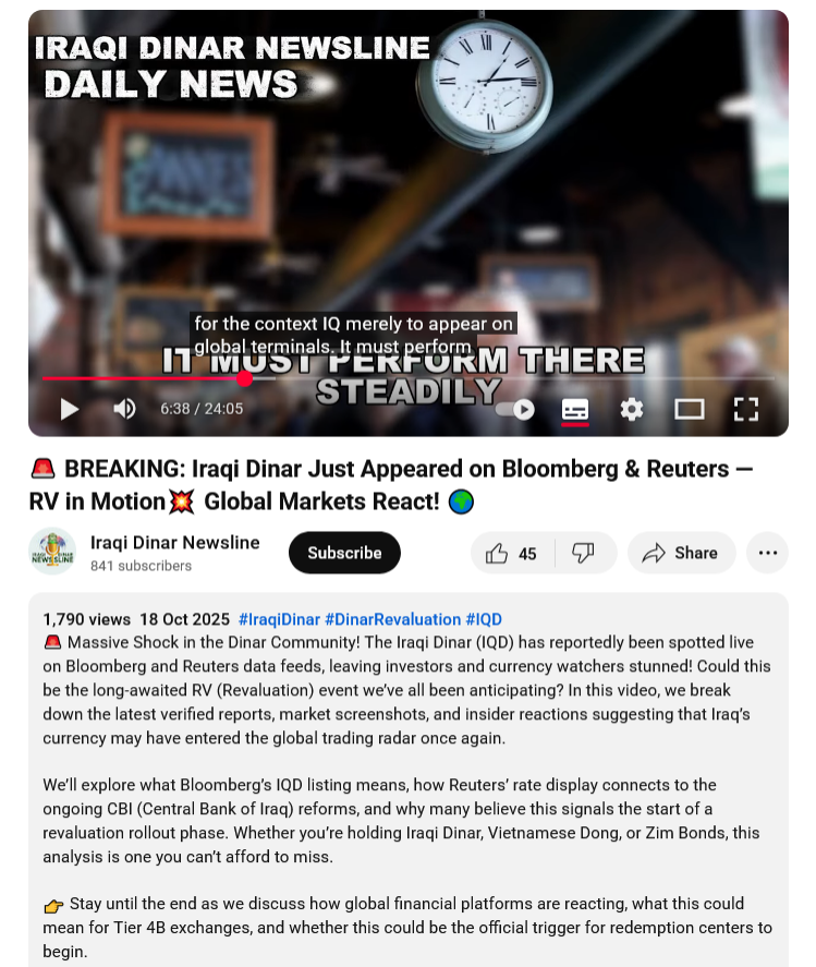 Fri. 17 Oct. 2025 BREAKING: Iraqi Dinar Just Appeared on Bloomberg & Reuters — RV in Motion Global Markets React! #GCR
