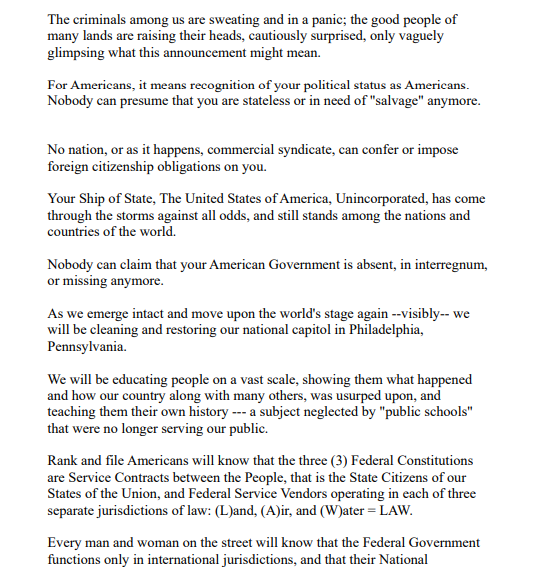 A supposed plan by “Perpetrators” to shift jurisdictions again and keep Americans under foreign control was stopped/overridden.