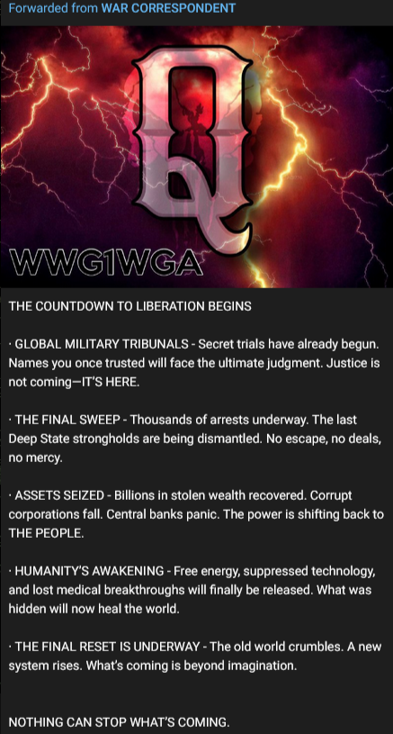 #wwg1wga #WeThePeople #SaveOurChildren #GREATAWAKENING #medbeds #GodWins #WhereIsHunter #pizzagate #MAGA #DeepState #ElectionFraud #AmericaFirst #STOPTHESTEAL #EPSTEINCLIENTLIST #obamagate #CrimesAgainstHumanity #Plandemic2