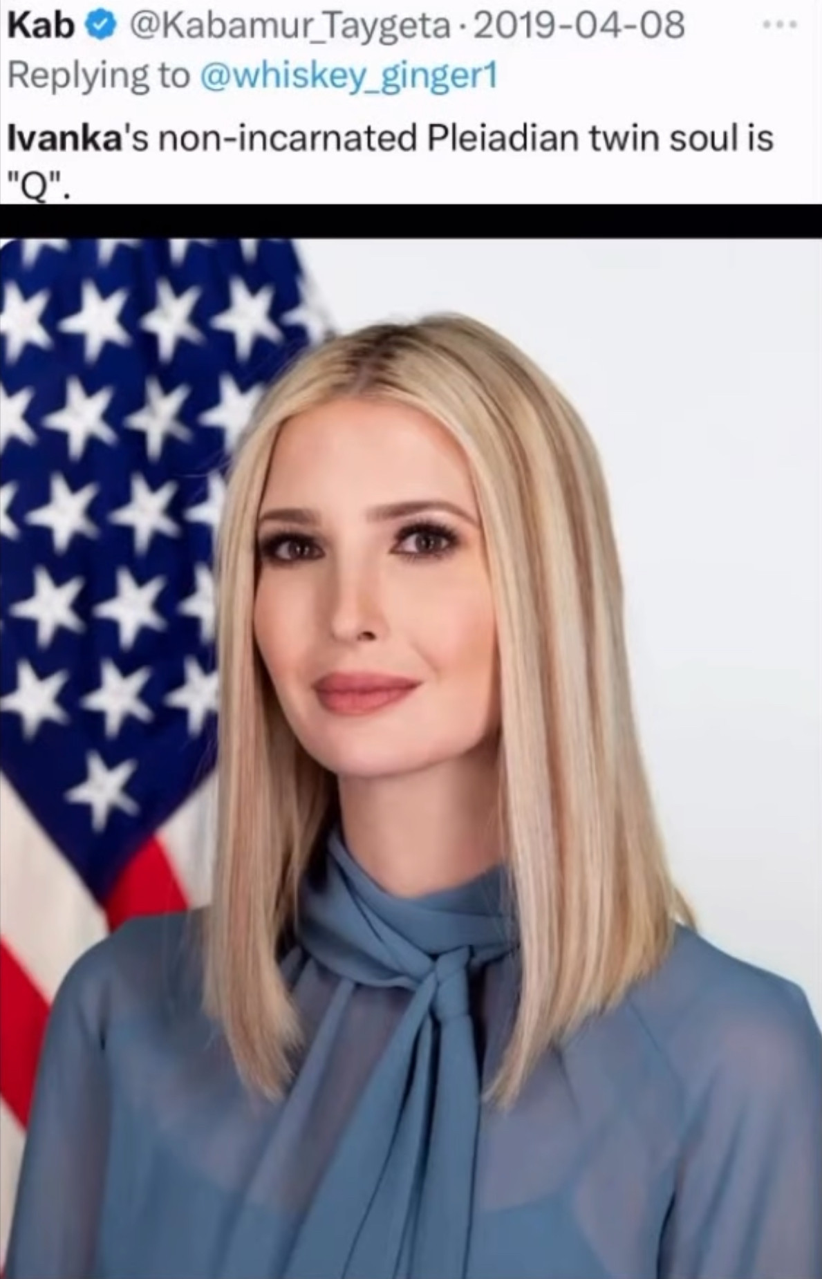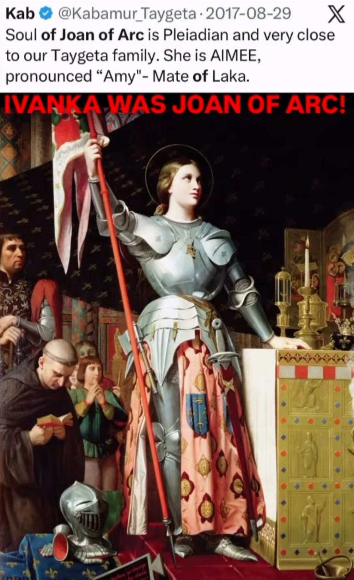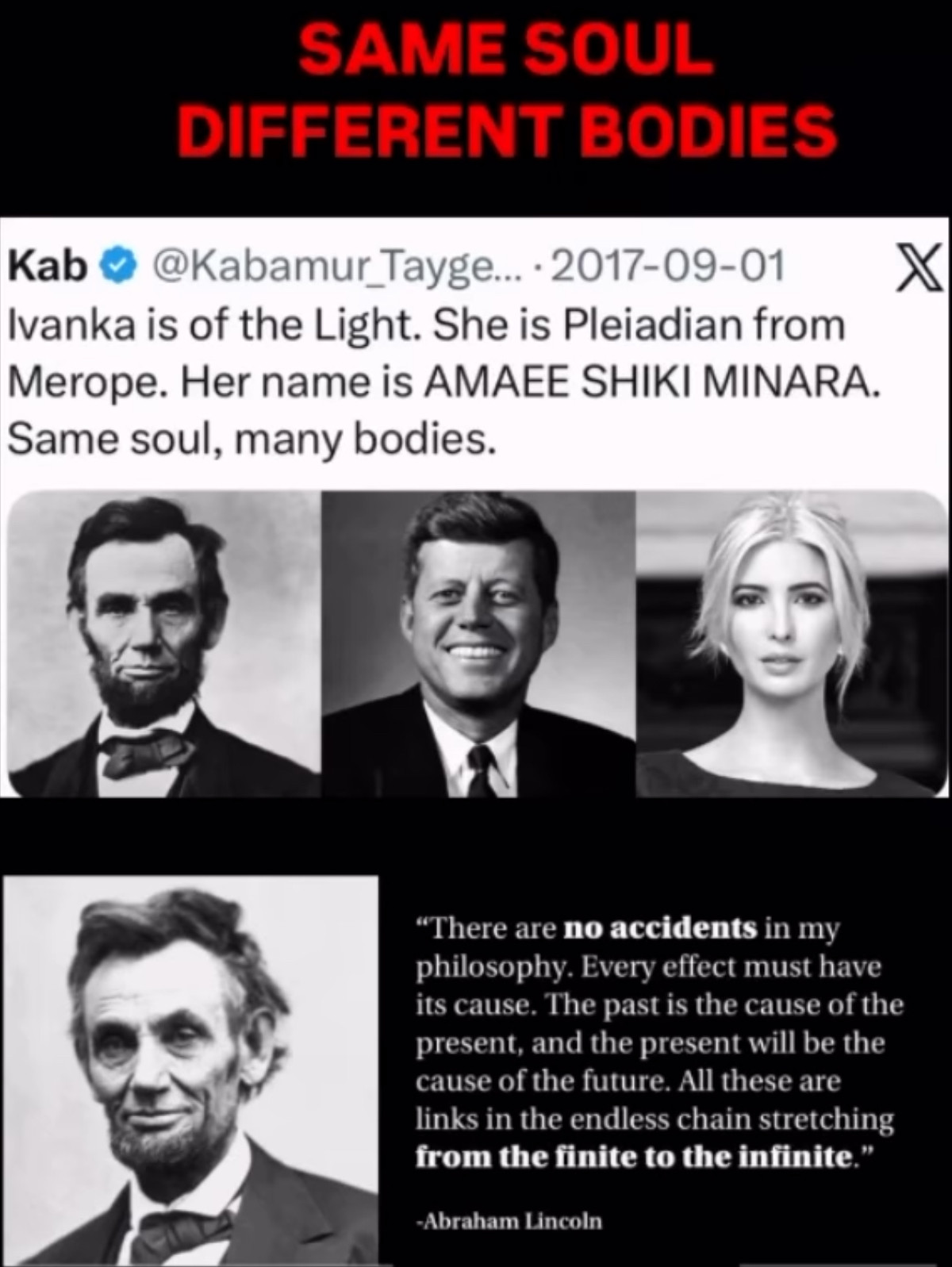 ABRAHAM LINCOLN, JFK AND IVANKA ALL SHARE julmi THE SAME SOUL. PLEIADIAN FROM MEROPE. THERE ARE MANY REFERENCES TO THE PLEIADES AND PLEIADIANS. IVANKA IS A LIGHT FOR US NOW BUT SHE ALSO AAS BEFORE AS JOAN OF ARC. Her name is AMAEE SHIKI MINARA.
