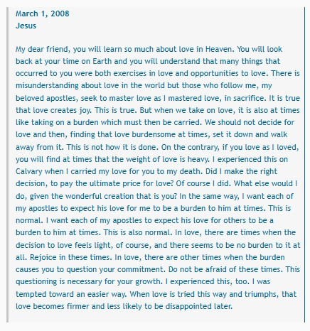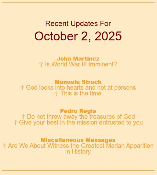 "Beloved children, come quickly to My Kingdom (cf. Jn 18:36).
