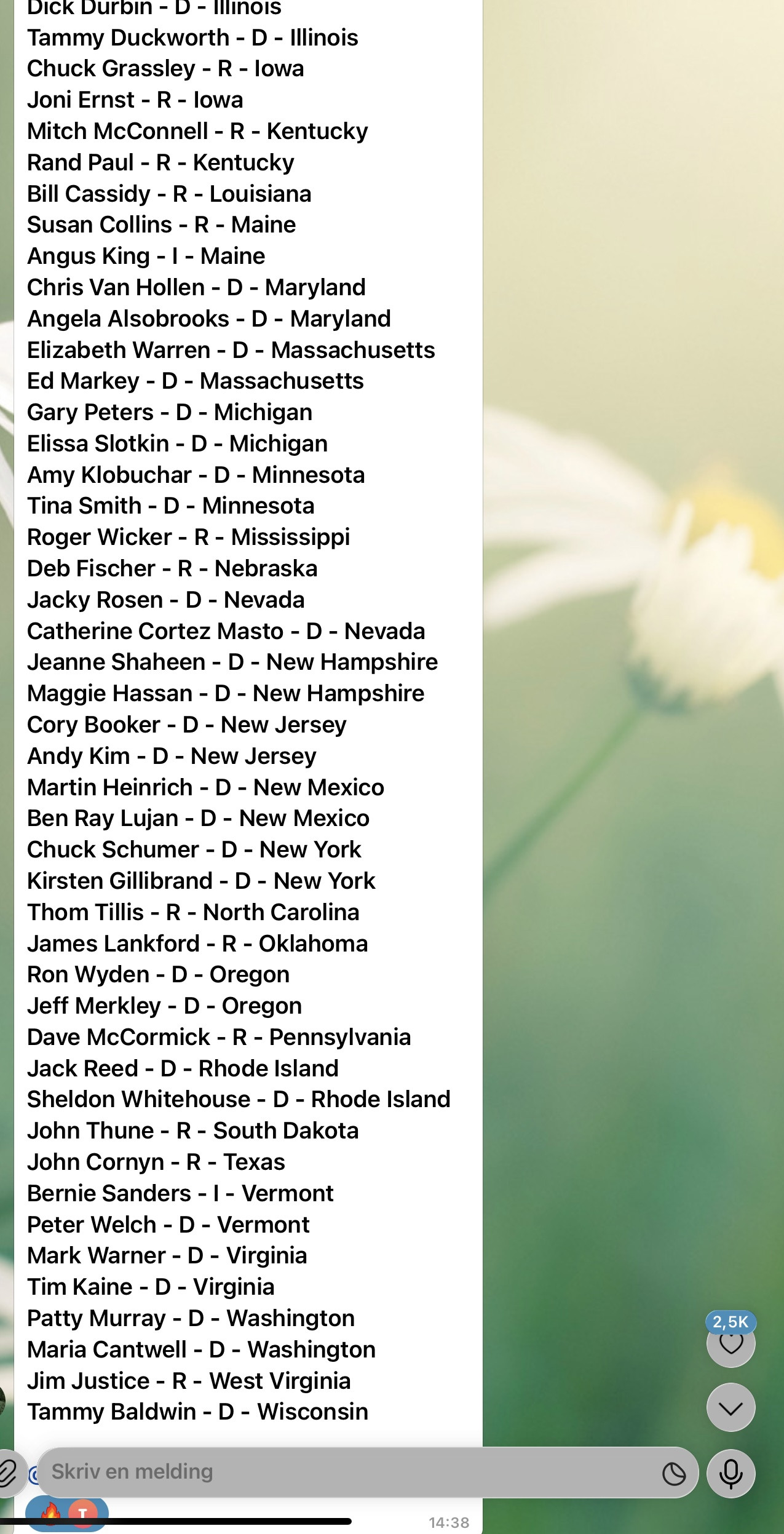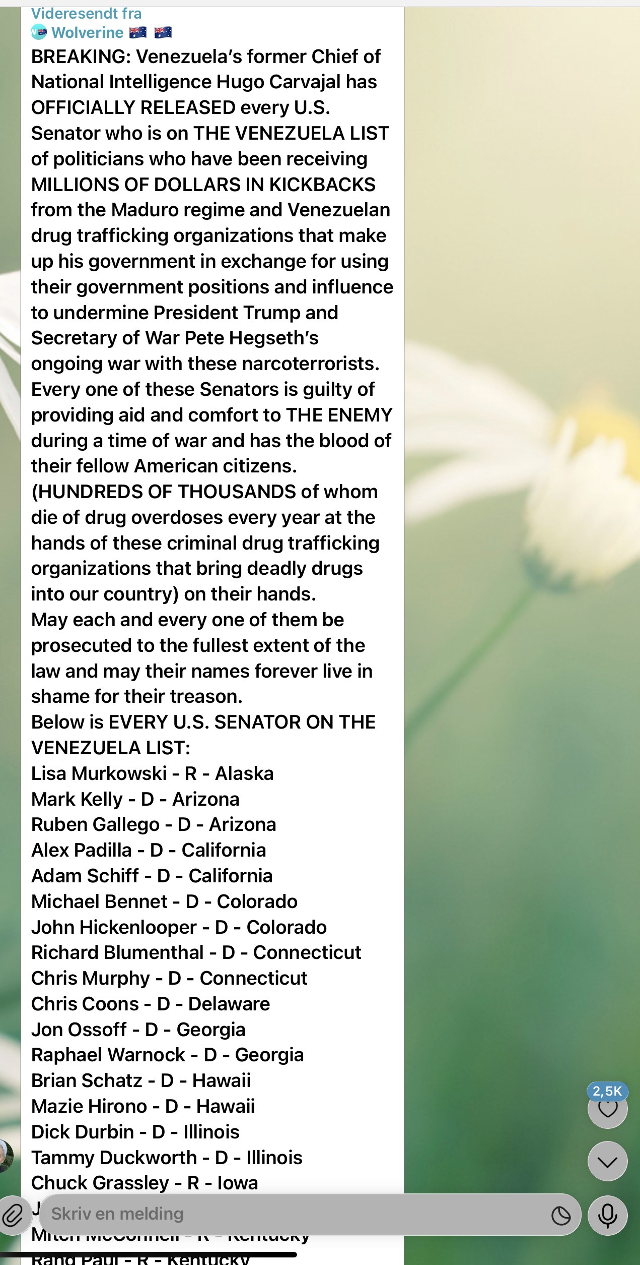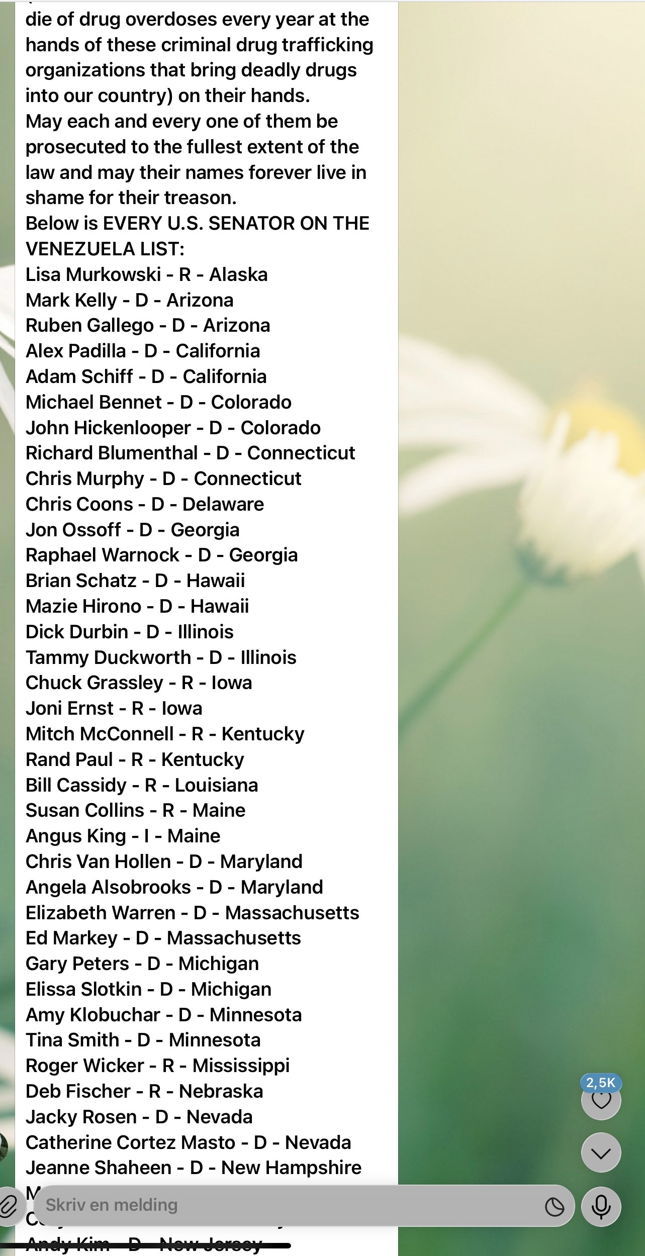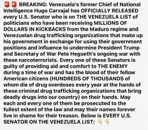 Below is EVERY U.S. SENATOR ON THE VENEZUELA LIST: