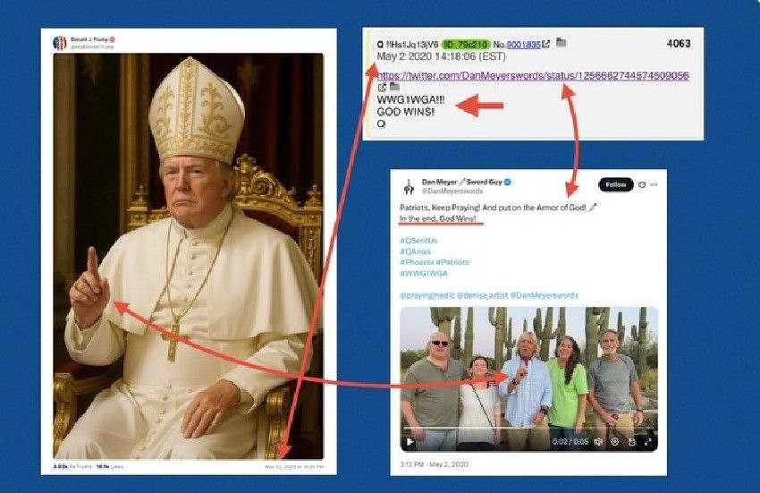 _The "anons" version is that in this case he shows: "Trump controls the Vatican".