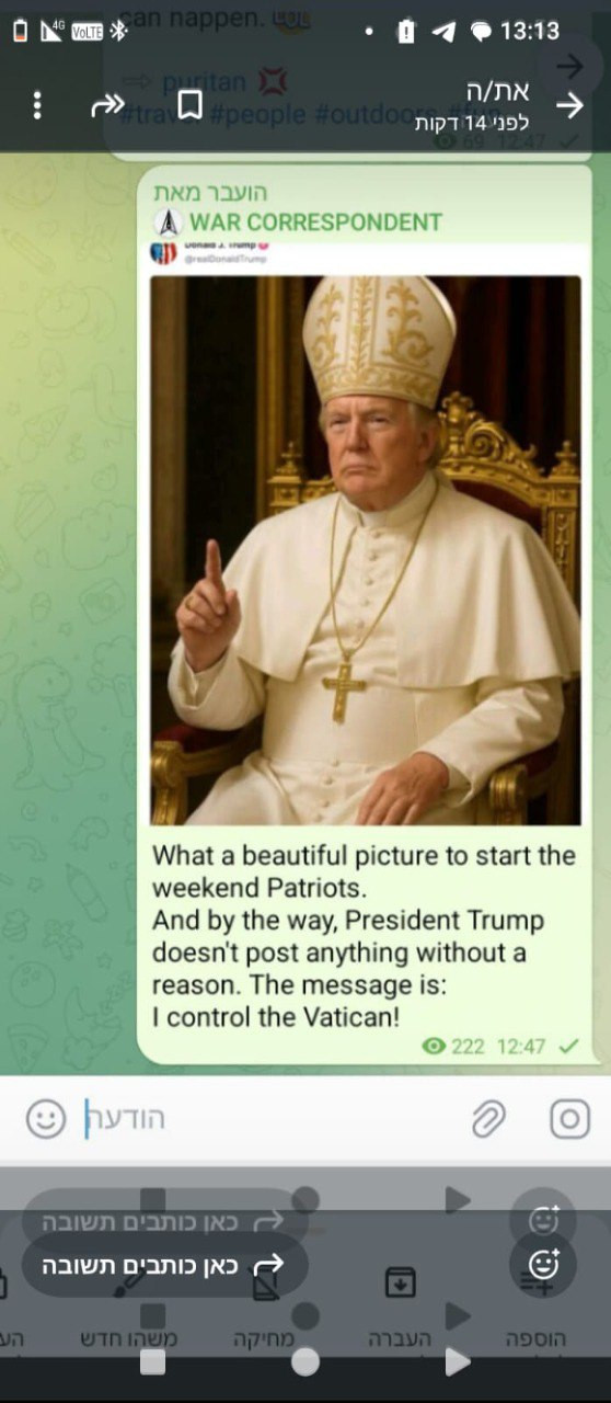 ✅ JUST IN✅ — Trump, and then the White House, publish a photo of Trump as the Pope.