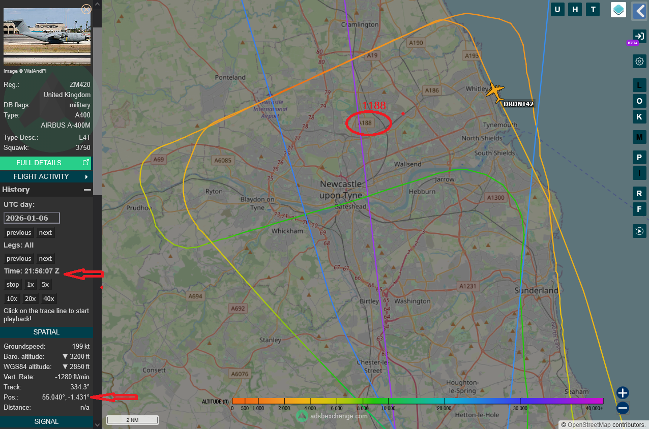 It had flown from RAF Brize Norton swinging around Newcastle but didn't land there.