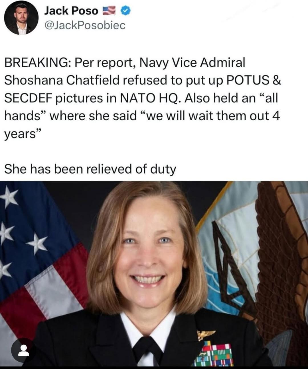 DOD Spox Sean Parnell Drops Jasmine Crockett Over Post Criticizing the Firing of Admiral Shoshana Chatfield — Appears to Confirm Refusal to Hang Portraits of Tr..