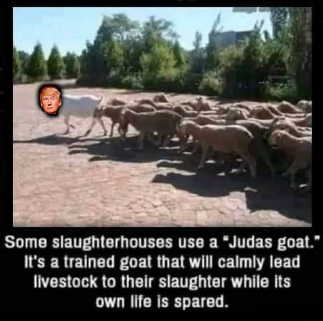 I beg to differ. I believe this is truth in plain sight—a hint at Trump being the “Judas Goat” (forerunner) for the beast and his system (and leading his base into accepting/embracing it)