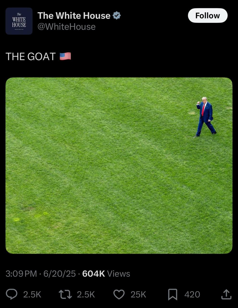 I find it rather strange how over the course of the last 6 months we have seen Don. Jr, a plethora of other celebrities, and now the official White House account on Twitter all referring to Trump as “the goat”