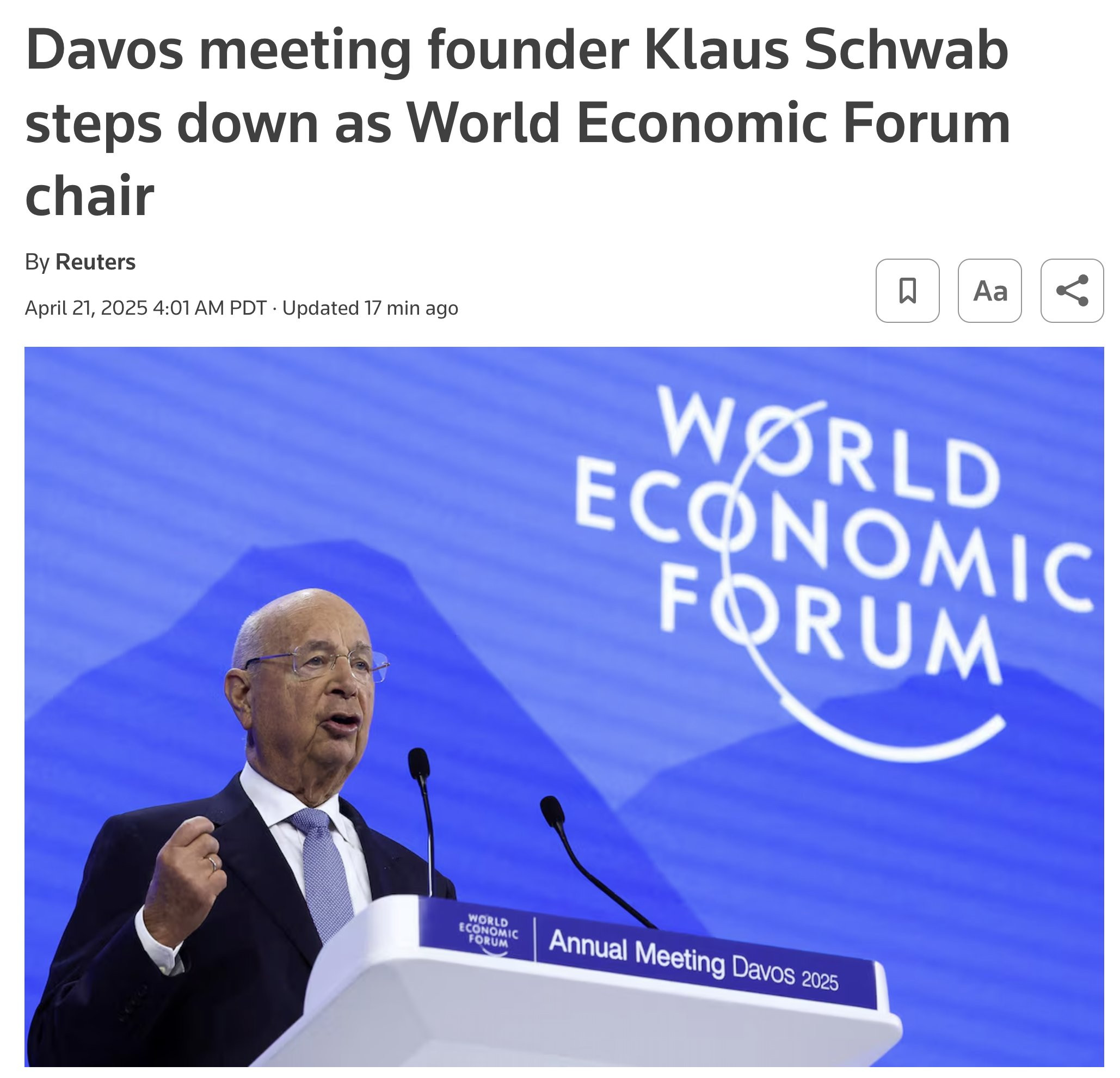 Pope Francis kicks the bucket and Klaus Schwab finally quits - same day.