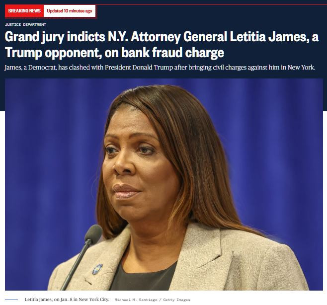 New York State's Attorney General, Letitia James has been Indicted by a Grand Jury in Virginia on Criminal Charges of Bank Fraud 😳 https://www.nbcnews.com/po...