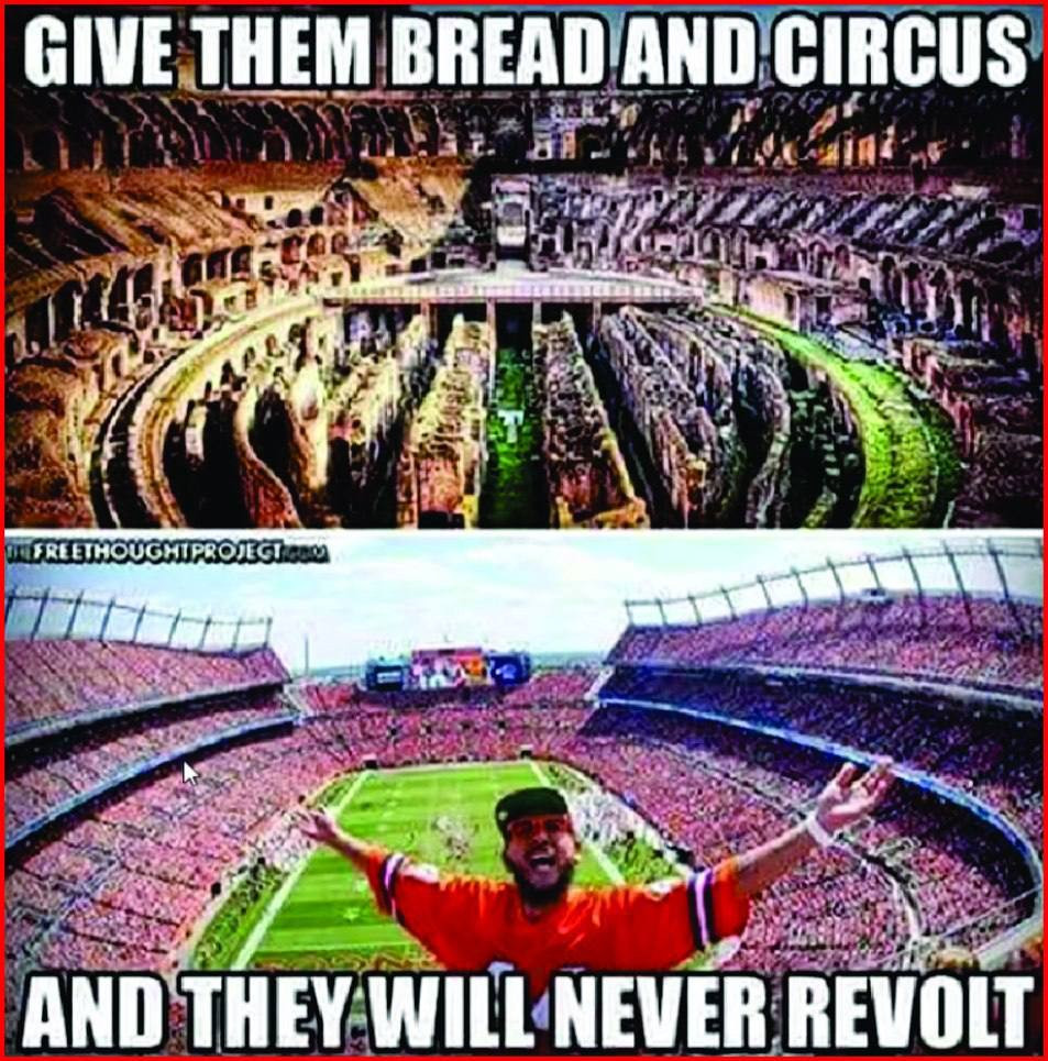 The term “bread & circus” was coined by the Roman poet Juvenal, describing a method by which an unresponsive gov. can pacify a population