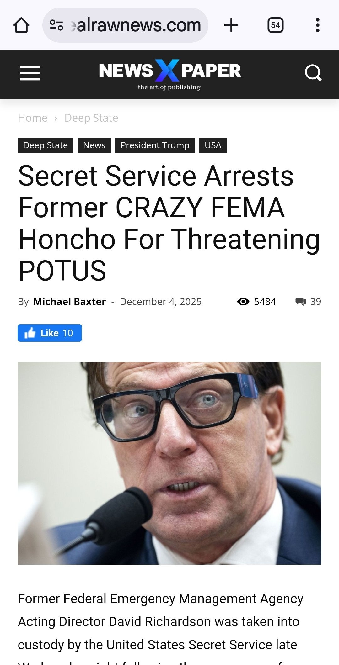 Former Federal Emergency Management Agency Acting Director David Richardson was taken into custody by the United States Secret Service late Wednesday night following the emergence of an audio recording in which he allegedly declared he would “take care of Donald Trump, no matter the cost.”