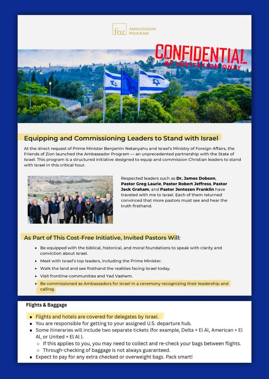If yes, chances are they’re in Israel at a graduation ceremony presided by Netanyahu where 1070 pastors will be certified “Ambassadors of Israel”