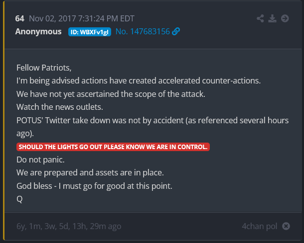 Should the lights go out please know we are in control.