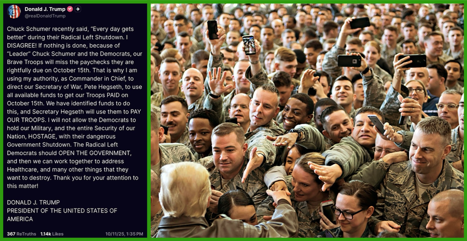 and Secretary Hegseth will use them to PAY OUR TROOPS.