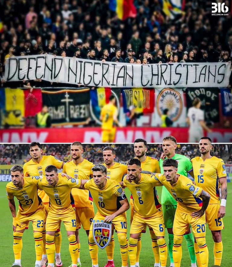 Romanian football fans display a banner reading "Defend Nigerian Christians" at their latest World Cup qualifying game.