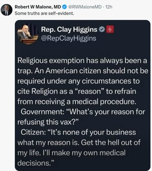 RFK: "Government bureaucracies should never coerce doctors or families into accepting vaccines or penalize physicians for respecting patient choice. That practice ends now."