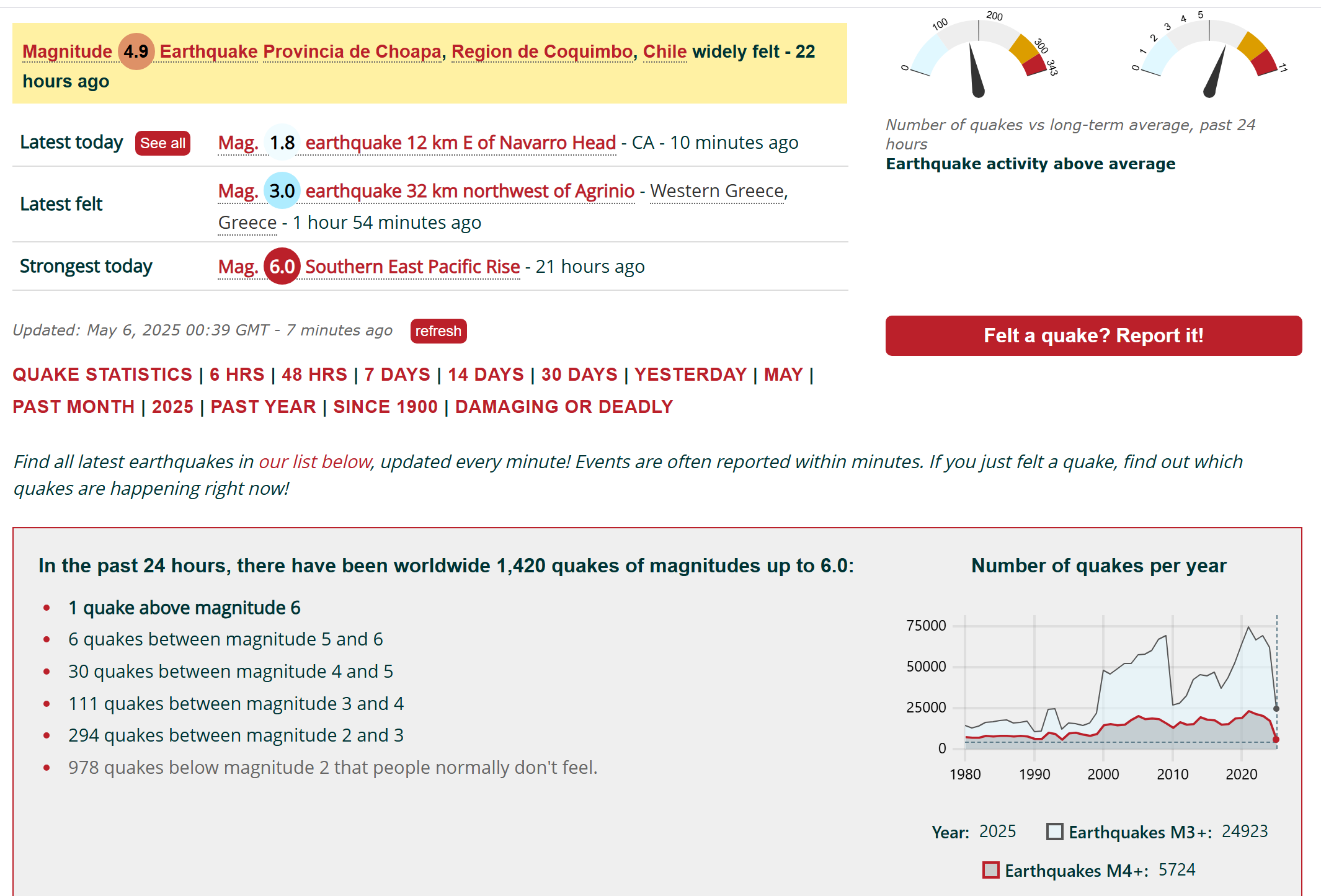 1,420 earthquakes in the last 24 hours
