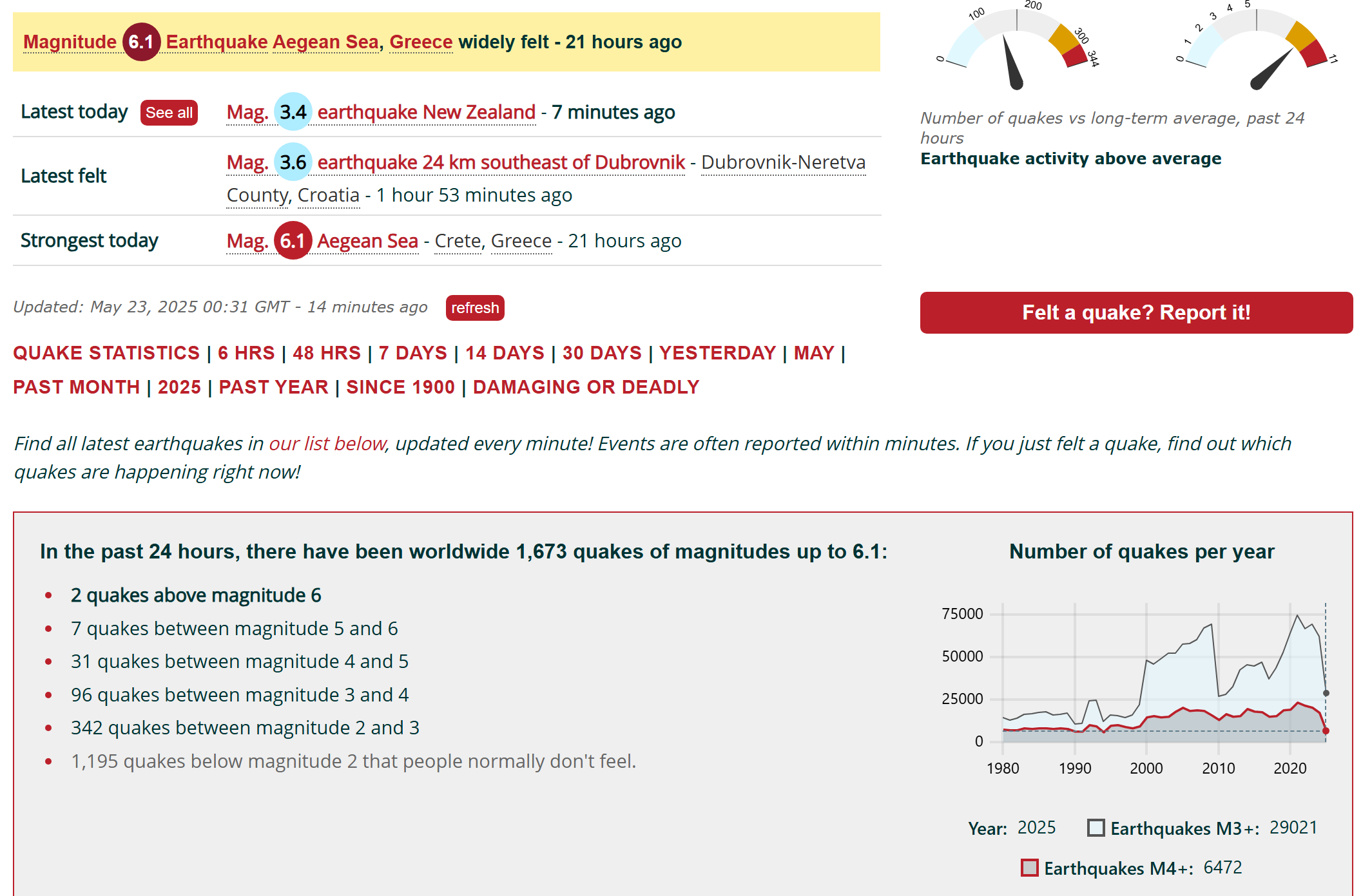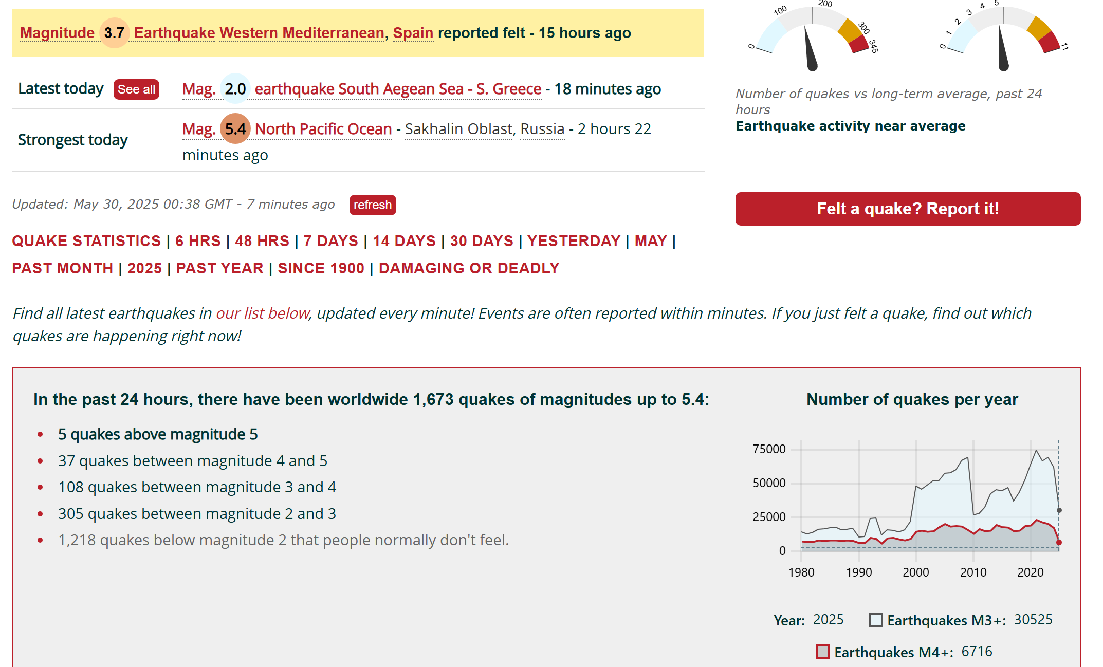 1,673 earthquakes in the last 24 hours