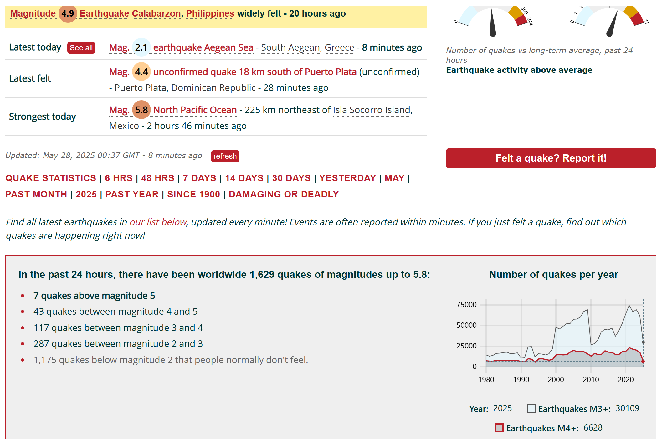 1,629 earthquakes in the last 24 hours