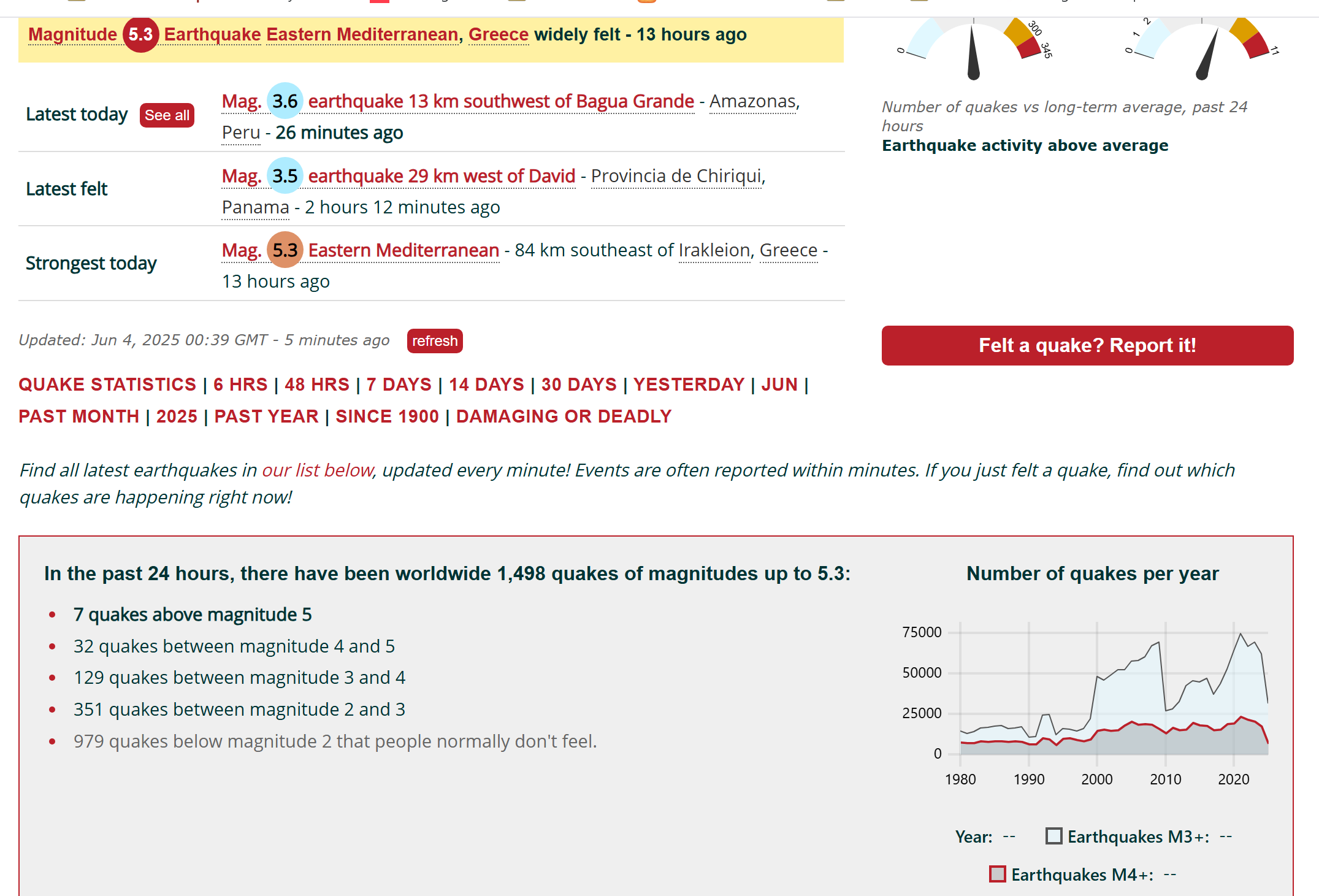 1,498 earthquakes in the last 24 hours