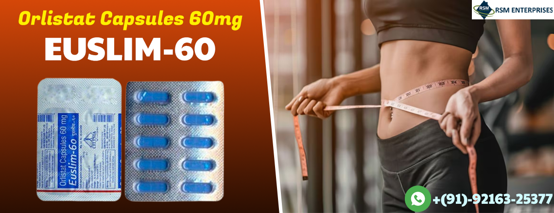 RSM Enterprises are recognized amidst prominent Orlistat Capsules 60mg (Euslim 60mg) Manufacturers, Exporters and Suppliers in India. Orlistat 60mg Weight Loss Pills are a prescription weight-control medication containing orlistat, which acts as a lipase inhibitor.