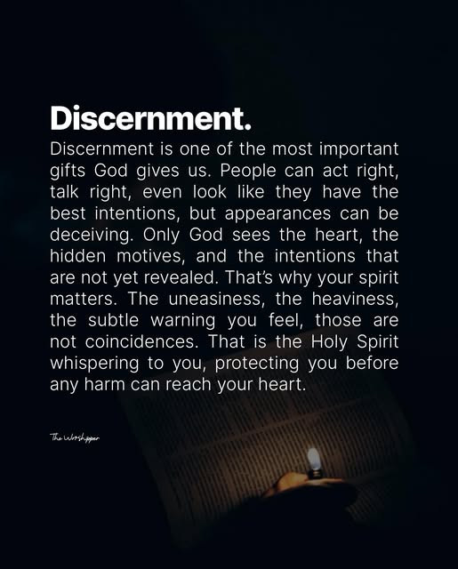 Do not ignore the warning. Do not silence the nudges in your spirit. Discernment is not paranoia, it’s God’s mercy. It keeps you from walking blindly into situations, relationships, or environments that would derail the plans He has for your life. Trust the whispers. Trust the unease. Trust the peace that disappears and the discomfort that lingers.