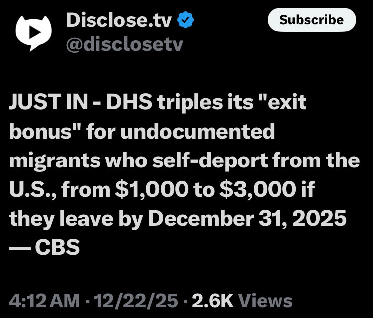 Holiday special on deportations. Get a $3000 bonus opposed to the regular $1000. Good through the end of the year. 🎅✈️