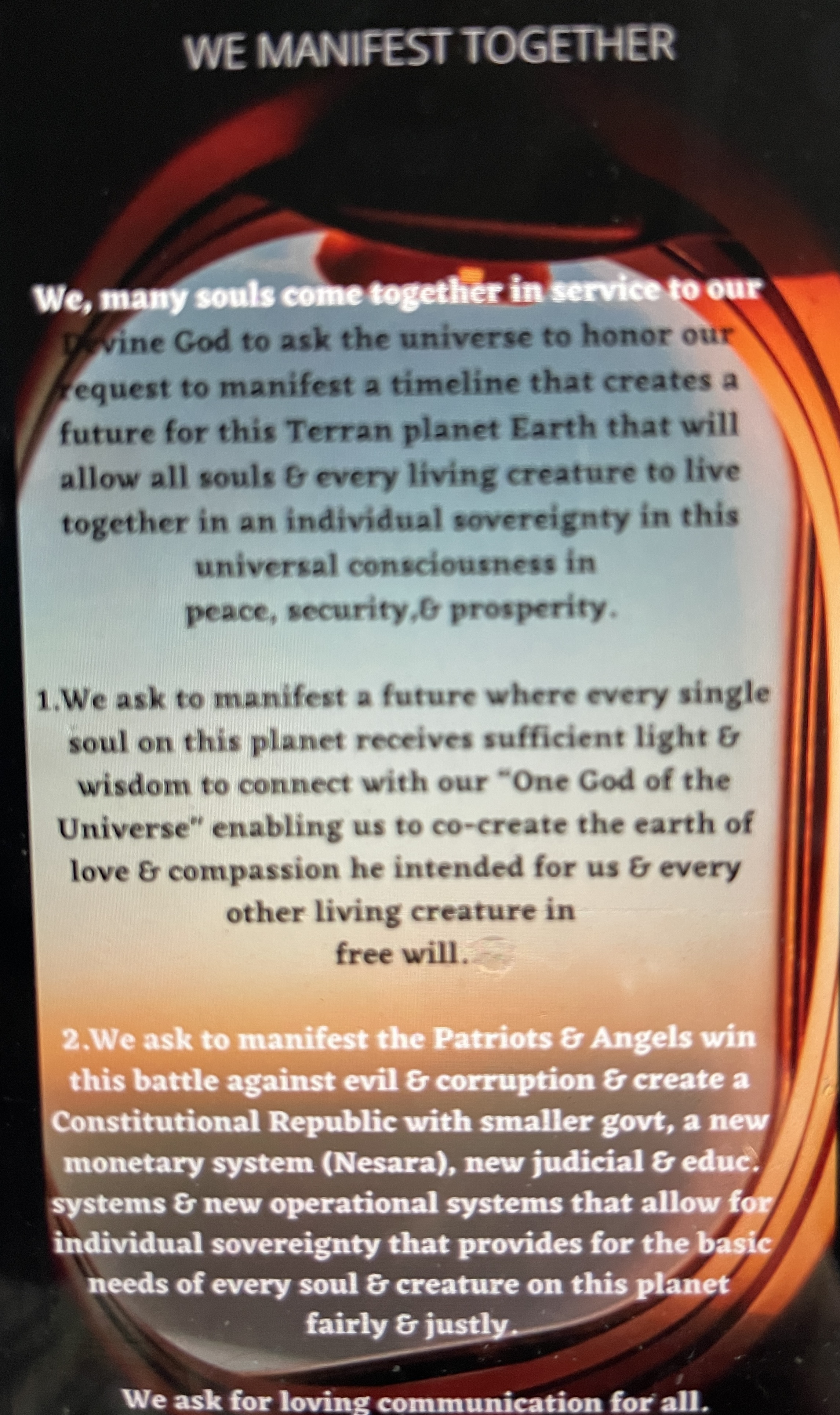 Please pray with us tonight out loud & then help manifest this amazing future for our children & future generations.