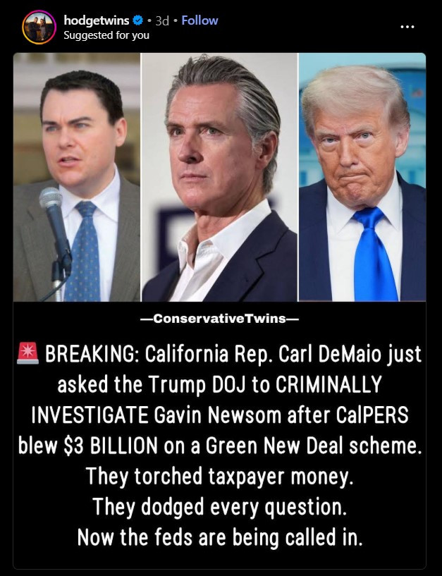 8 days after evidence was submitted to the U.S Department of Justice –– the Whitehouse confirmed California is under federal investigation.