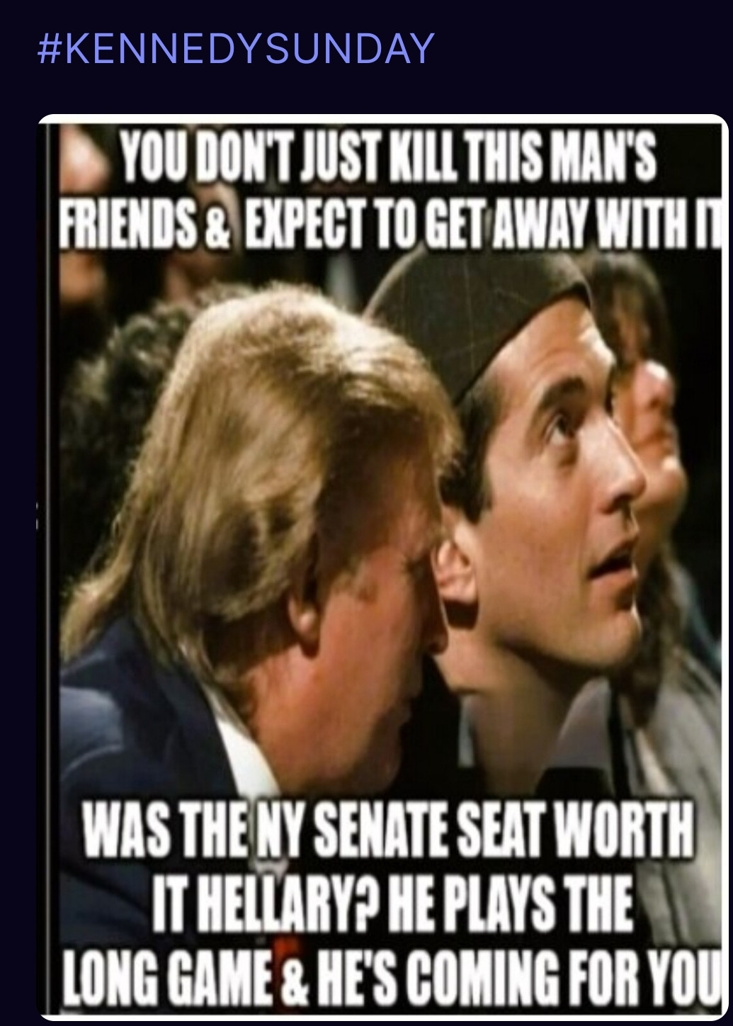 "Every time they make progress, move closer to that hope for peace - the war mongers and deep state step up and do everything they can to stop them!"
