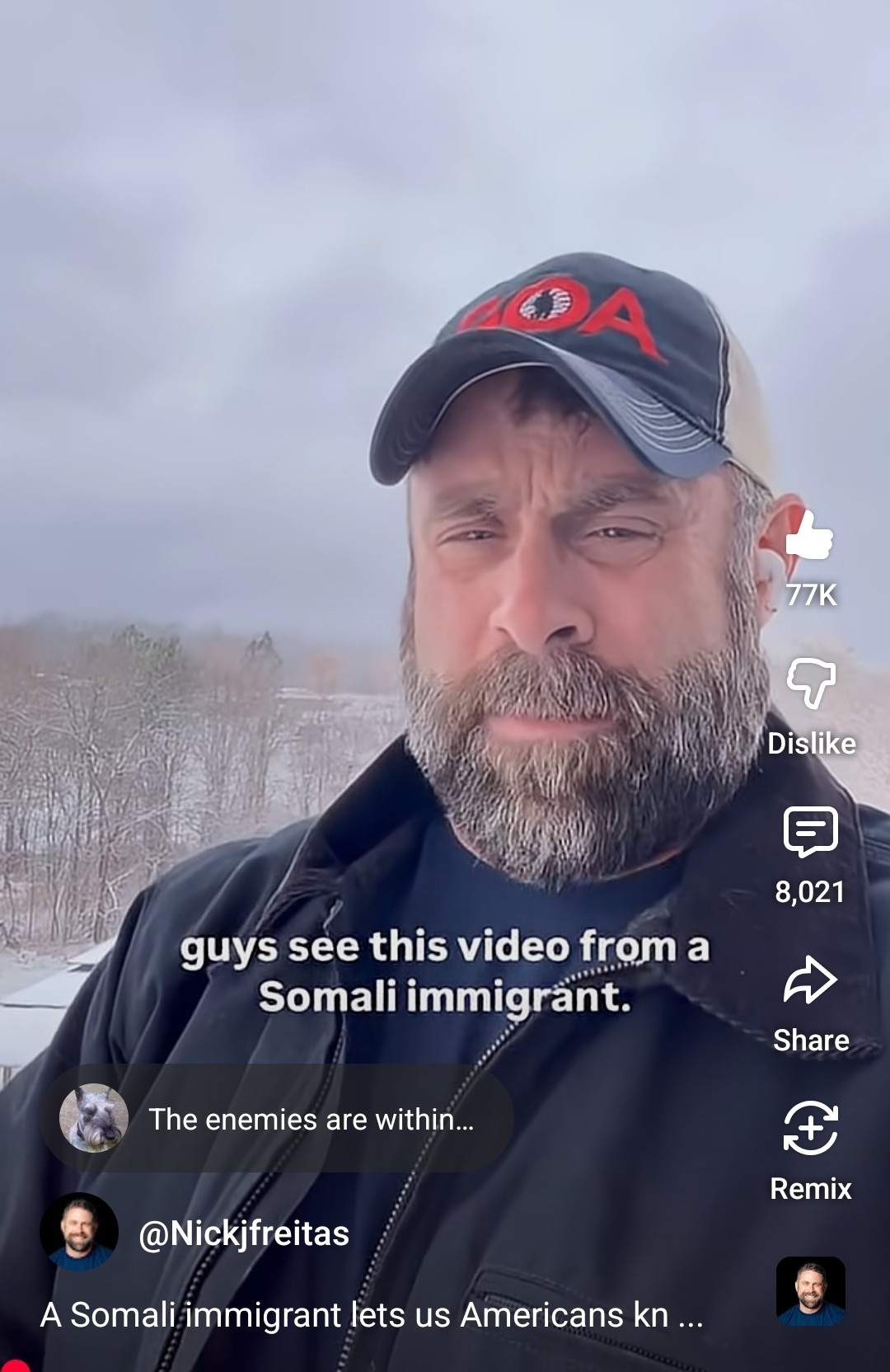 He adds that at least 75% of the Somali population there is on welfare.