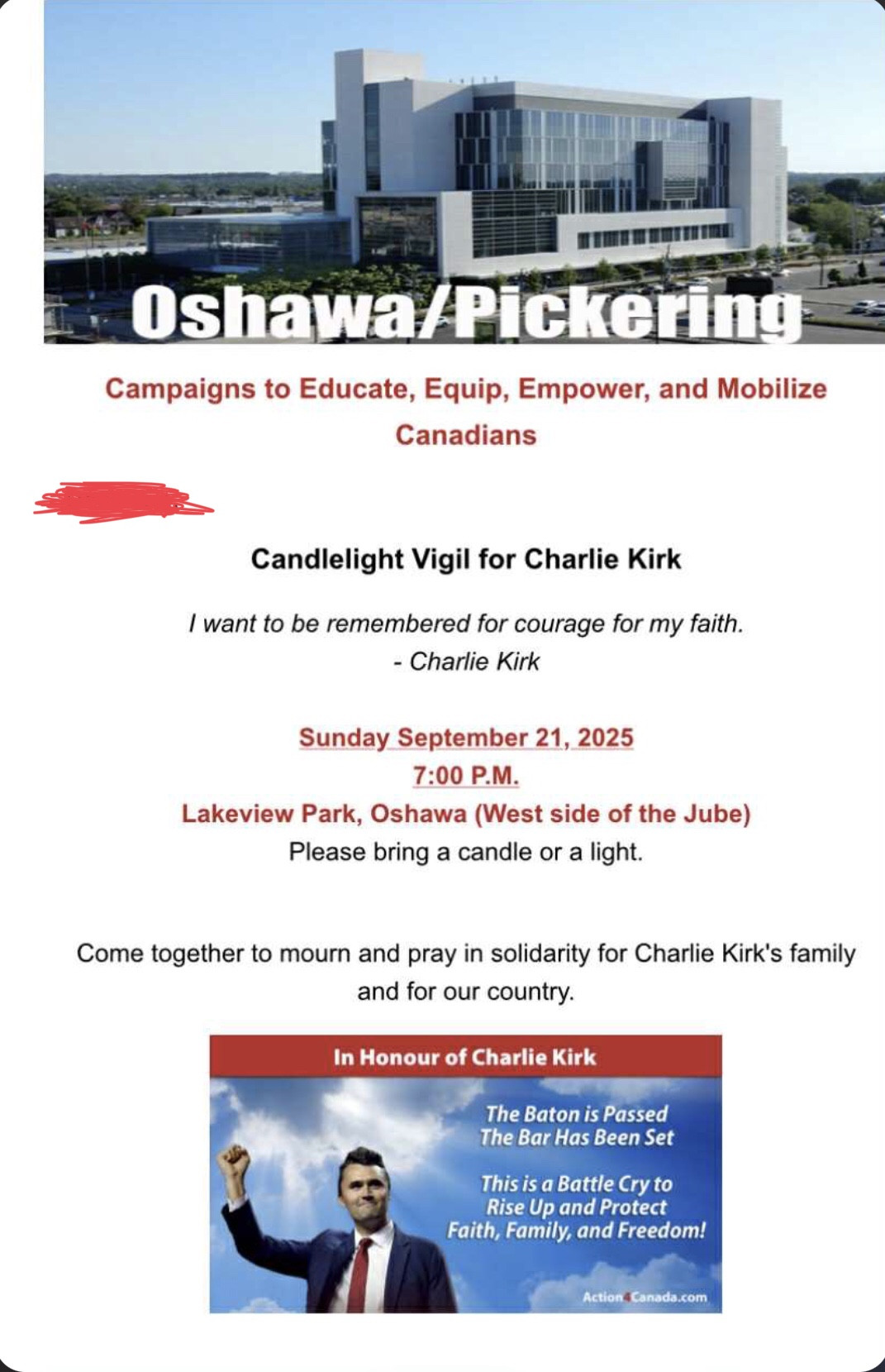 Pretty cool. My wee neck of the woods in Canada 🇨🇦 is celebrating the life of Charlie Kirk on Sunday. 🙏❤️