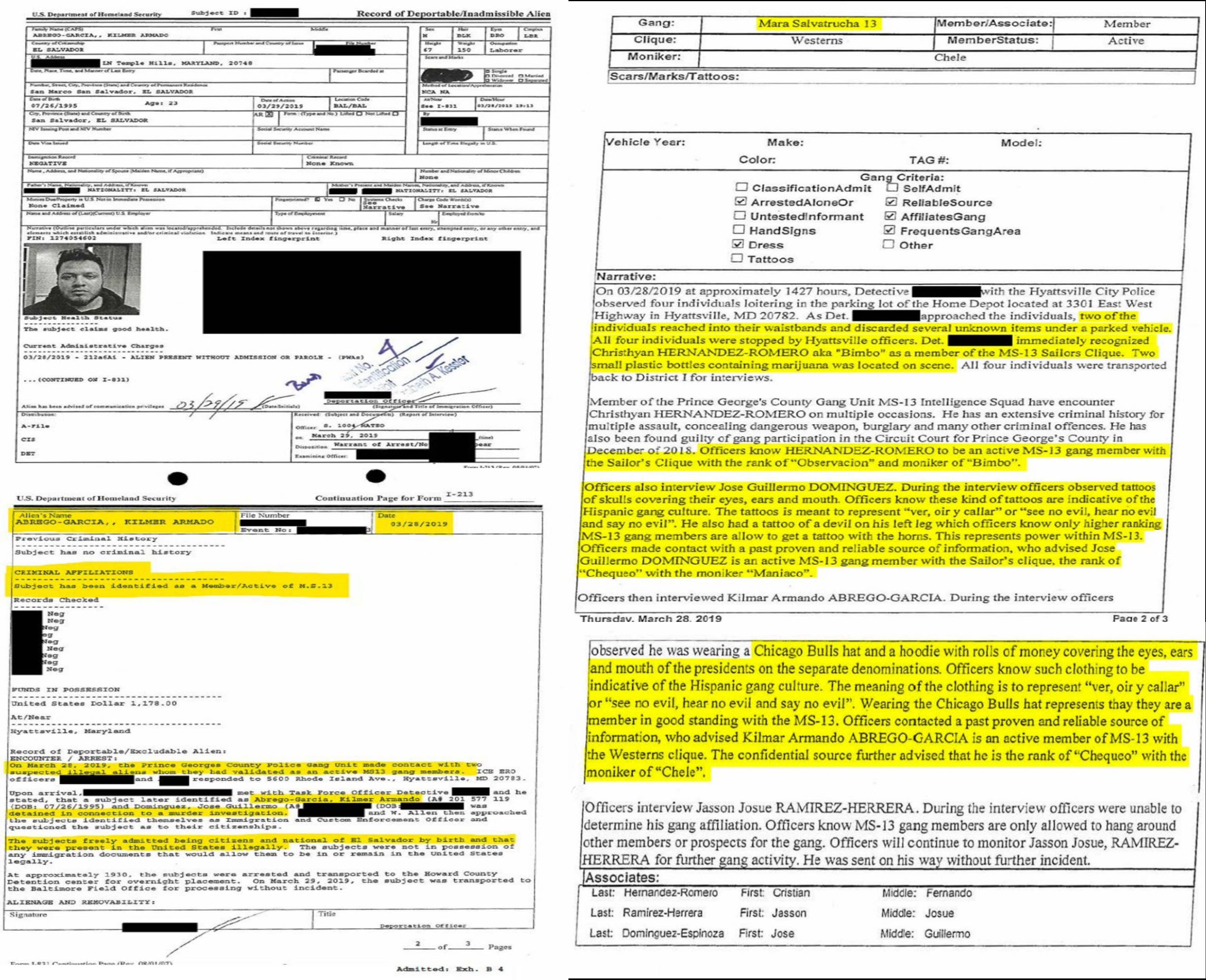 DOJ and DHS release documents related to deported illegal alien Kilmer Abrego Garcia - was arrested in the company of known MS-13 gang members in possession of drugs, carried the rank of "Chequeo" within the terrorist group.