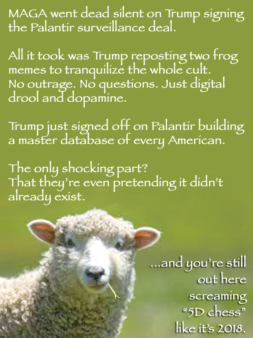 Patriots cheer Palantir like it’s some swamp-draining, illegal alien slicing sword.