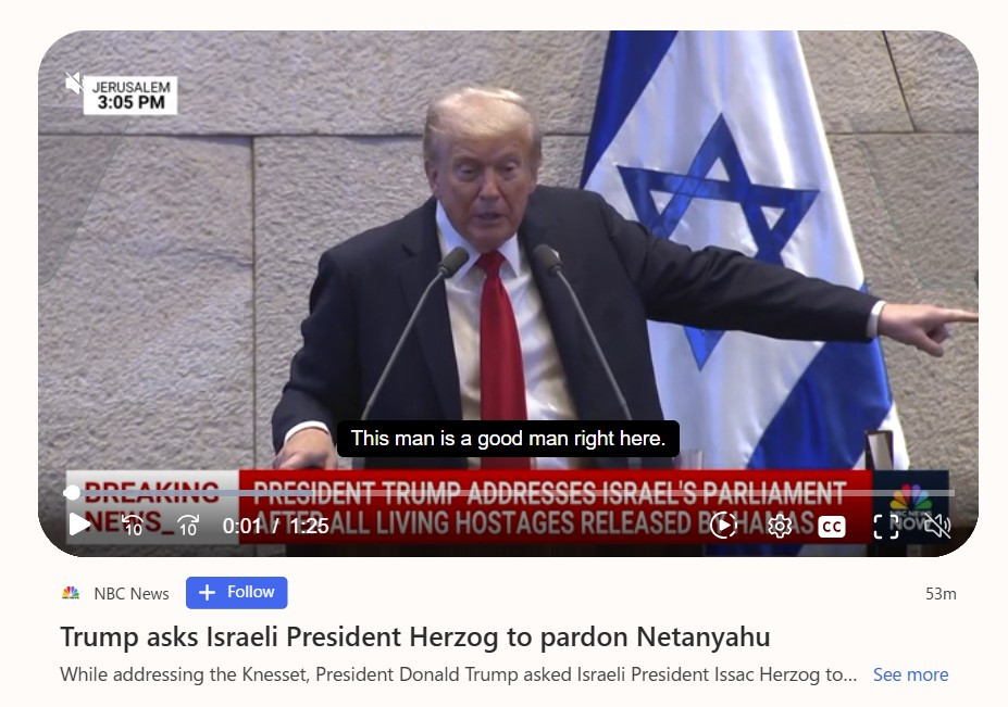 Donald Trump asks Isaac Herzog to pardon Benjamin Netanyahu, who faces bribery and fraud charges in three separate corruption cases since 2020.