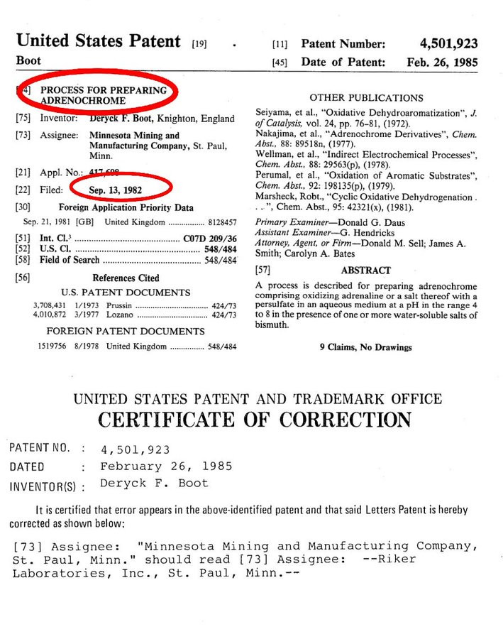 This company filed for a patent called Process for Preparing Adrenochrome back in 1982.