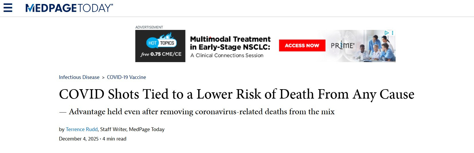 how " COVID Shots Tied to a Lower Risk of Death From Any Cause