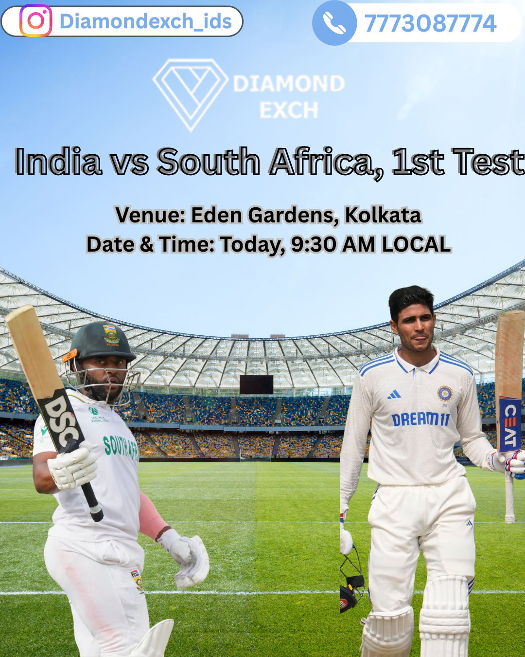 Join us for the highly anticipated Diamond Exchange ID India vs South Africa 1st Test match, live from Eden Gardens in Kolkata! 🏏 Don't miss out on all the action as these two powerhouse teams go head to head.