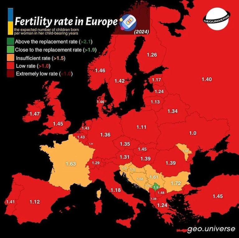 The solution to reversing LOWER birth rates in Europe is to halt incoming migration and support mass deportations.