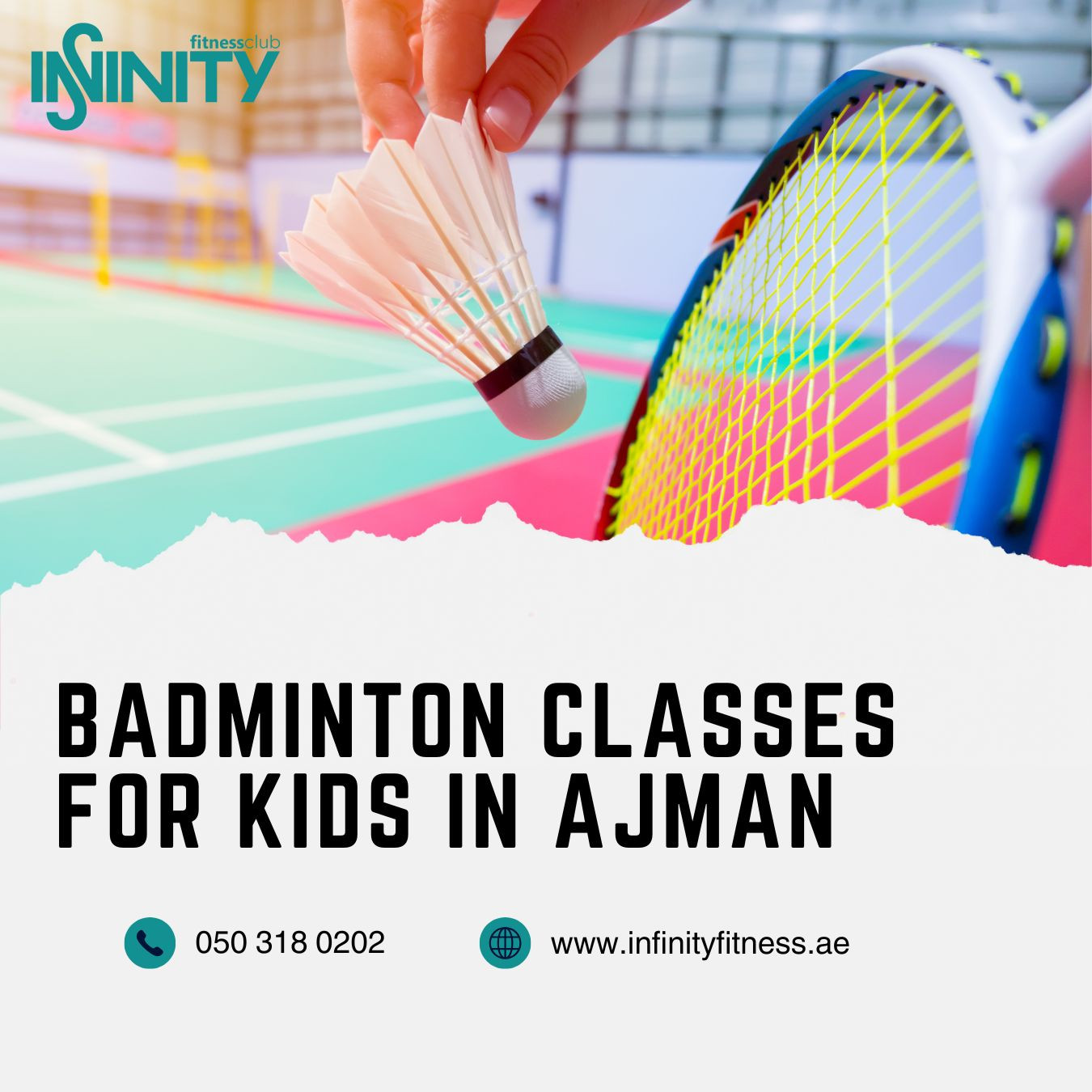 Let your child learn, play, and grow with Badminton classes at Infinity Fitness Club in Ajman! Our professional coaches provide structured training that helps kids develop agility, balance, and hand-eye coordination while boosting confidence and fitness. Designed for all skill levels, sessions focus on fun, teamwork, and skill improvement in a safe and motivating environment. Enroll your child today and watch them smash their way to success on the court at Infinity Fitness Club! For more details visit website - https://infinityfitness.ae...