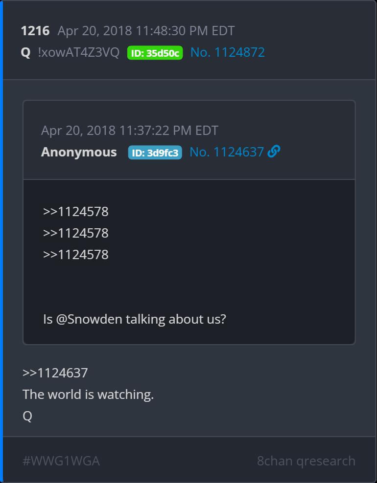 Z's timestamp 12:16 - Q1216: “The world is watching.”