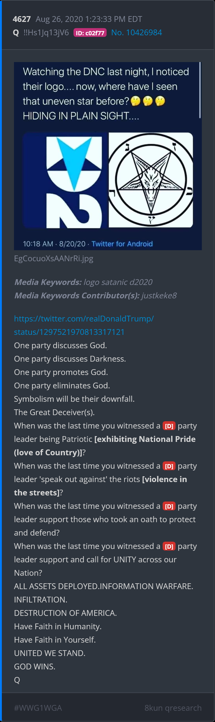 The last orig Q post, prior to 2 yr gap, was Dec 8 2020 (The Immaculate Conception) (12+8= 20/2020). There were exactly 40 mos from last Q post to 2024 eclipse