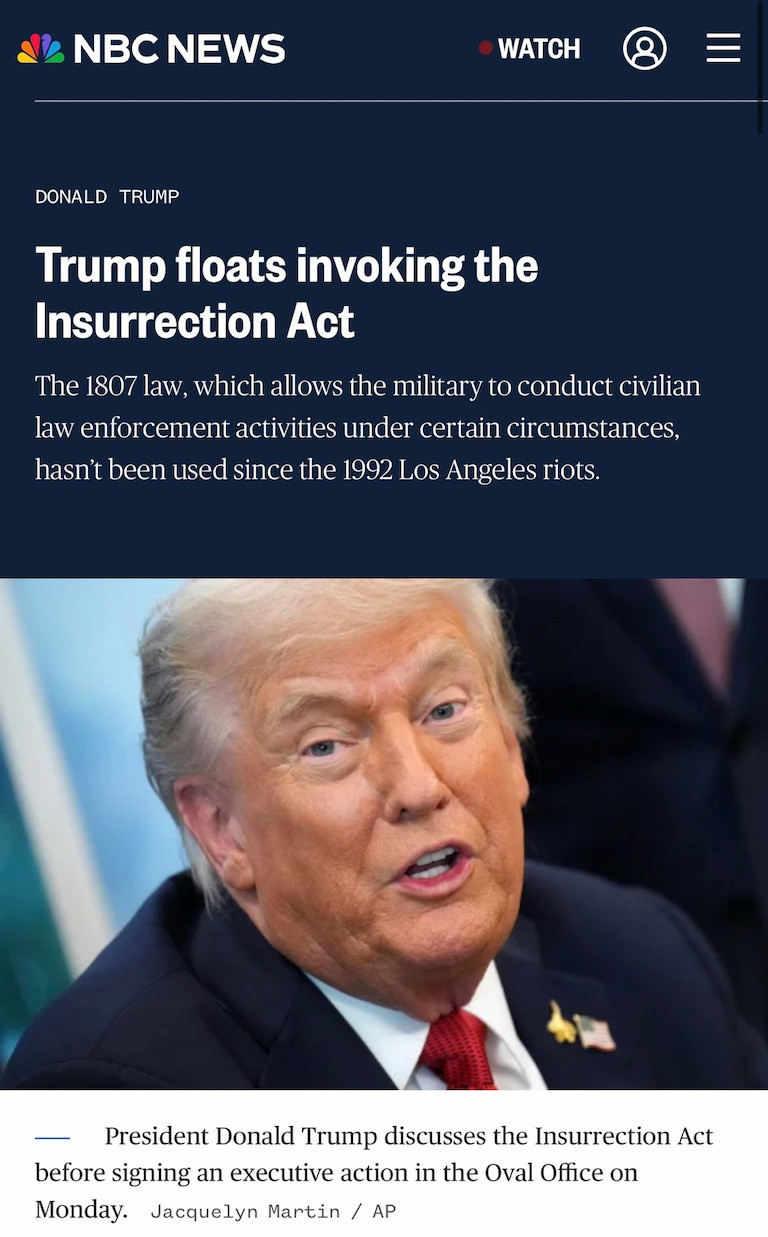 “In a text message to NBC News before Trump’s Oval Office remarks, former White House strategist Steve Bannon said Trump ‘needs to invoke the Insurrection Act of 1807 immediately and deploy active duty U.S. Army personnel and assets to Portland and Chicago — he needs to put Pritzker and Newsom in their place.’”