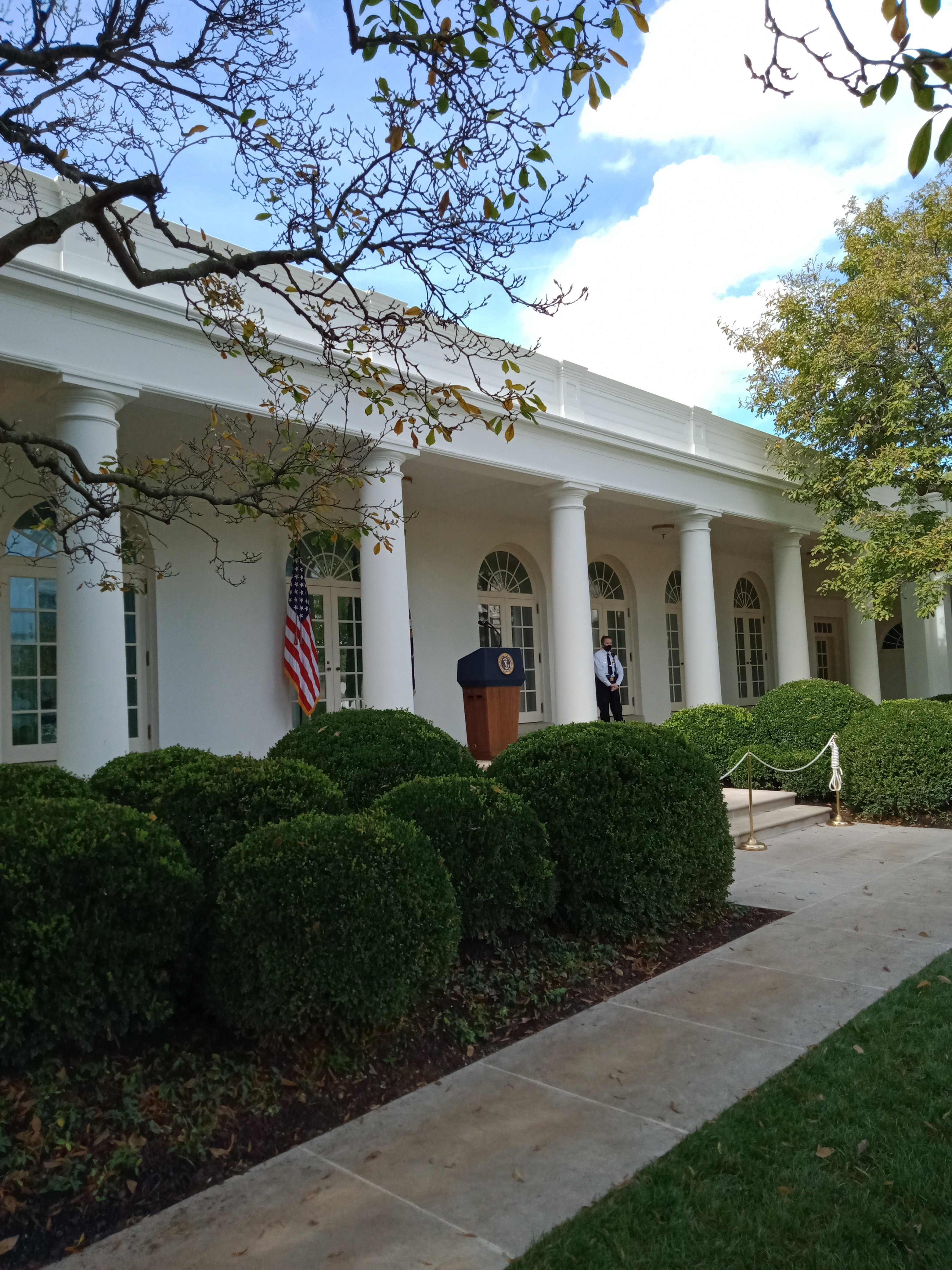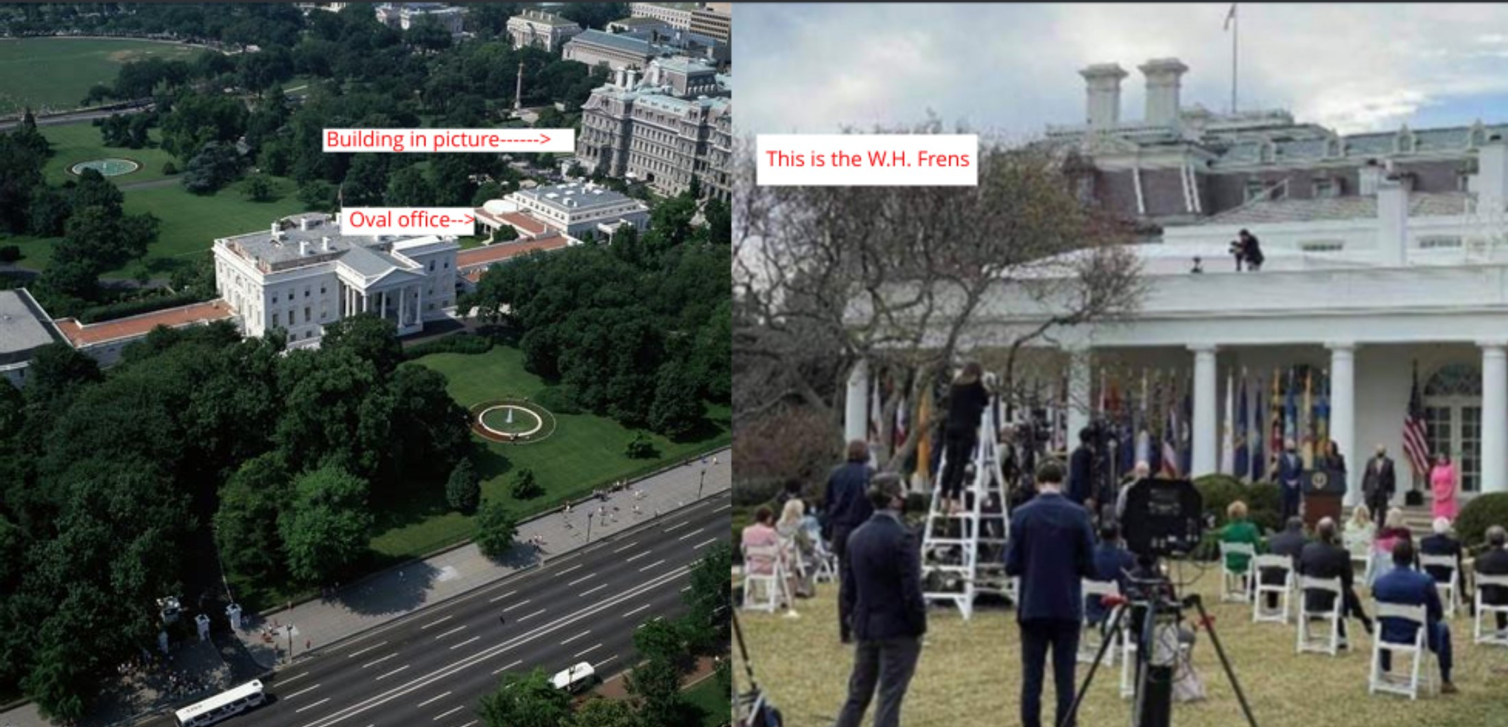 As much as I want to agree that this isn't the W.H. unless they photo shopped in the building in the background for the whole entire time, which can be done, this IS the White House. This is where pressers are normally held and everything is where it should be. The second pic is one of my own that shows the tree and branches are even correct. Please make sure to verify pics before you repost or you help the deepstate win the war by spreading their misinformation.